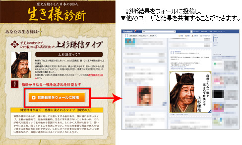 日本の100人」のプロモーションの一環としてリリースしました。弊社では以前より商品毎のfacebookページを立ち上げてきましたが、今回はより多くのユーザに商品を知ってもらうため、初めてfacebookアプリを打出そうと決めました。